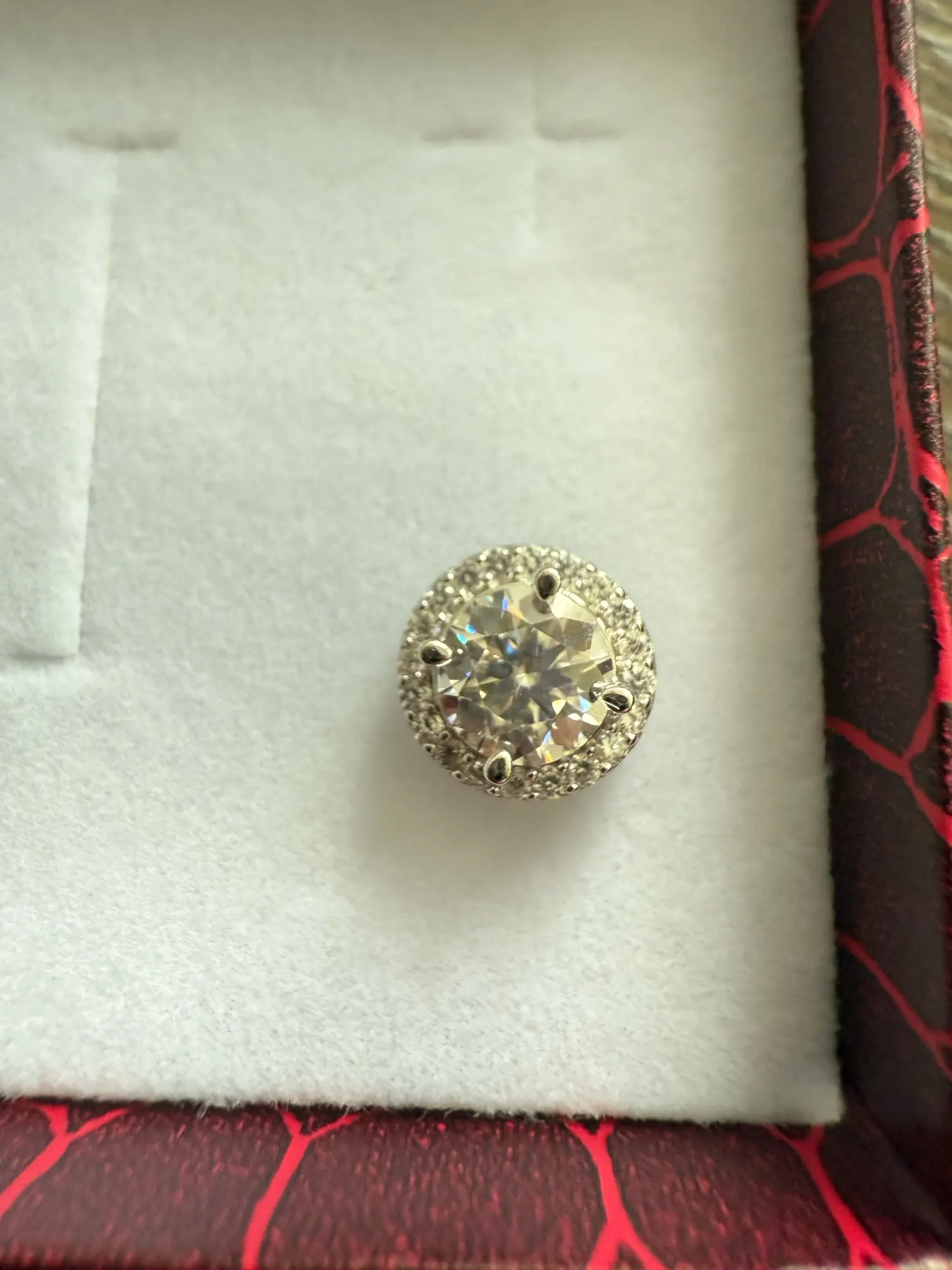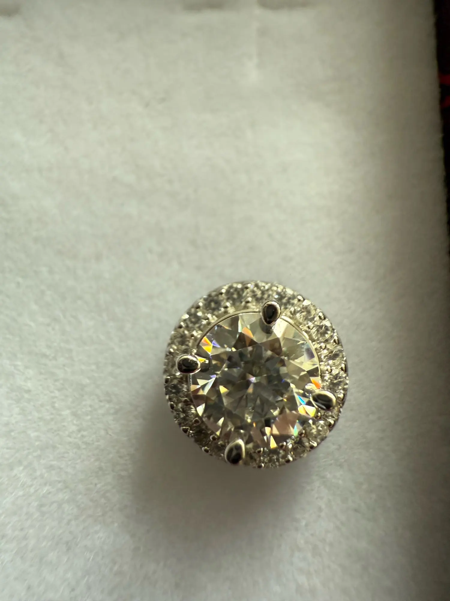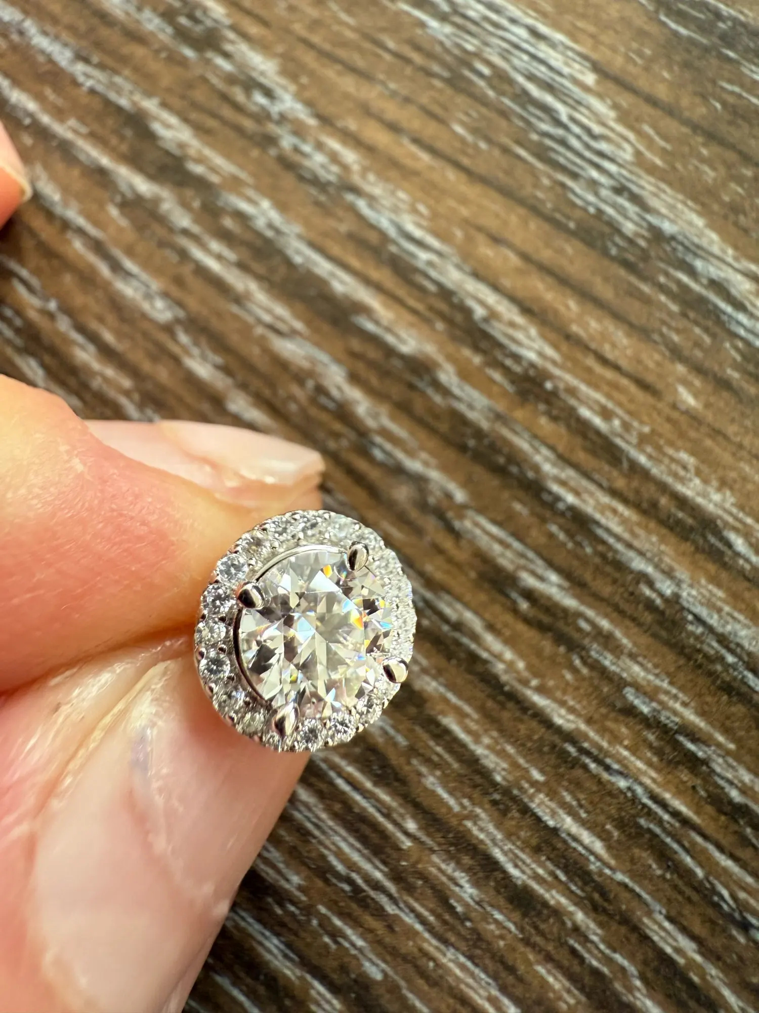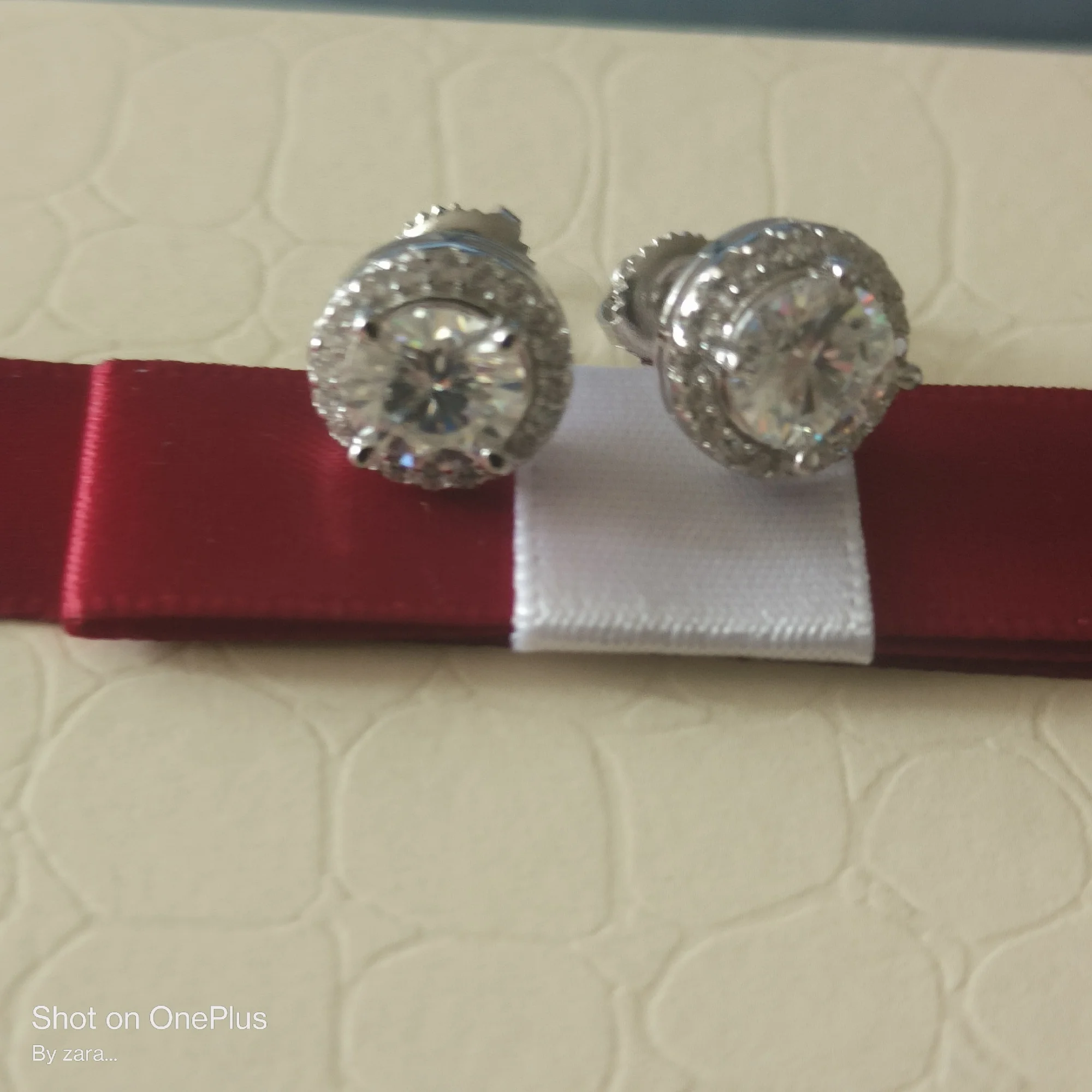 The Azoria Earrings embody classic sophistication with a modern touch. Featuring a radiant round-cut center Moissanite surrounded by a delicate halo of shimmering stones, these earrings are designed to capture light from every angle.