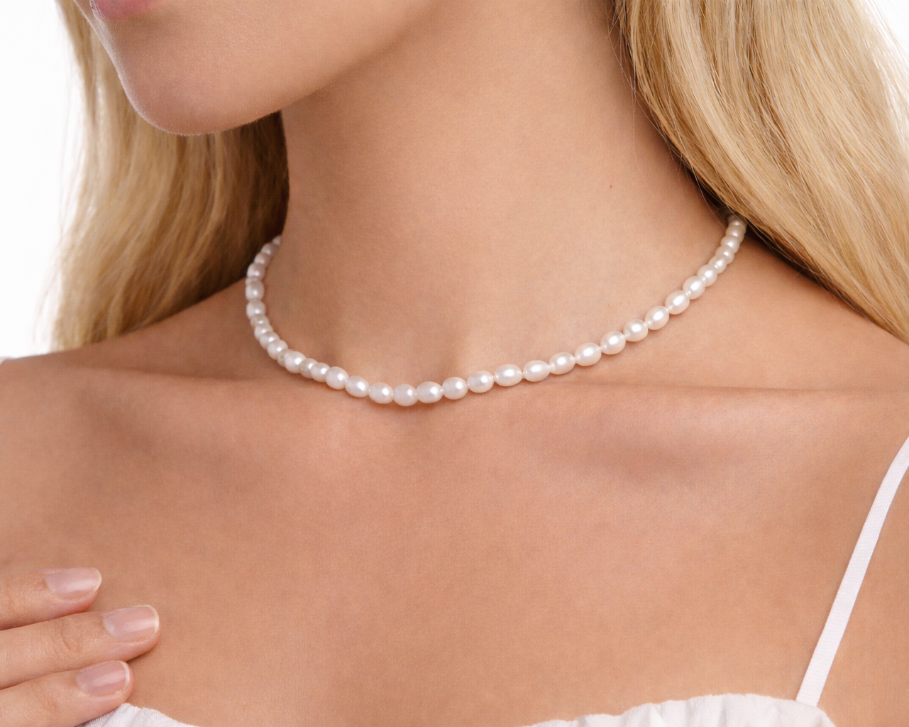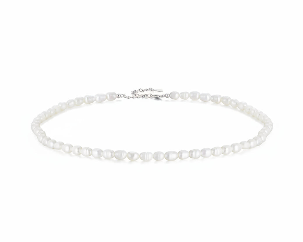 The Clarae Pearl Necklace is a timeless expression of elegance and natural beauty. Crafted with a delicate strand of beautiful white pearls, this necklace embodies refined simplicity and effortless sophistication.