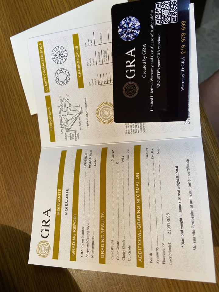 Certification: Each moissanite piece includes an official GRA Certificate, guaranteeing authenticity and quality.