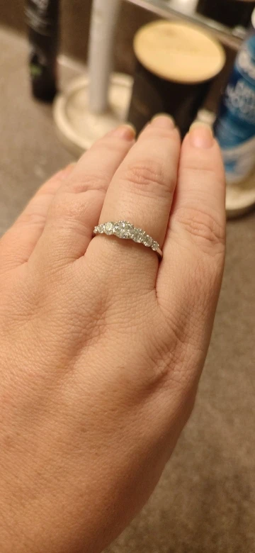 Stunning and beautiful ring. The stones sparkle like real diamonds. Arrived in gift packaging. Fast delivery. Highly recommend.