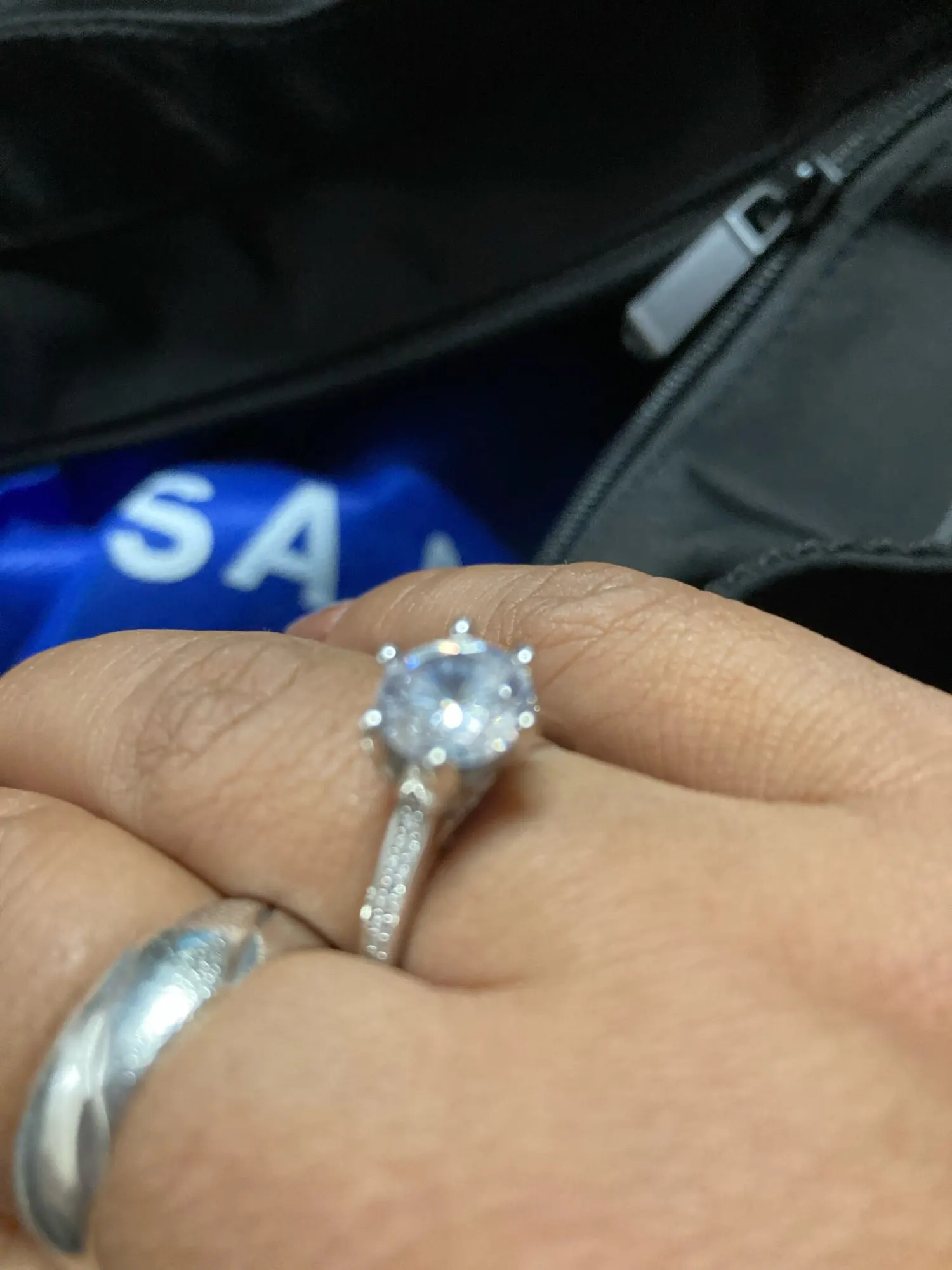This elegant ring is designed in the style of a classic engagement ring, featuring a large, radiant centerpiece stone that immediately catches the eye. Its refined setting and polished band create a timeless look that feels both luxurious and meaningful.